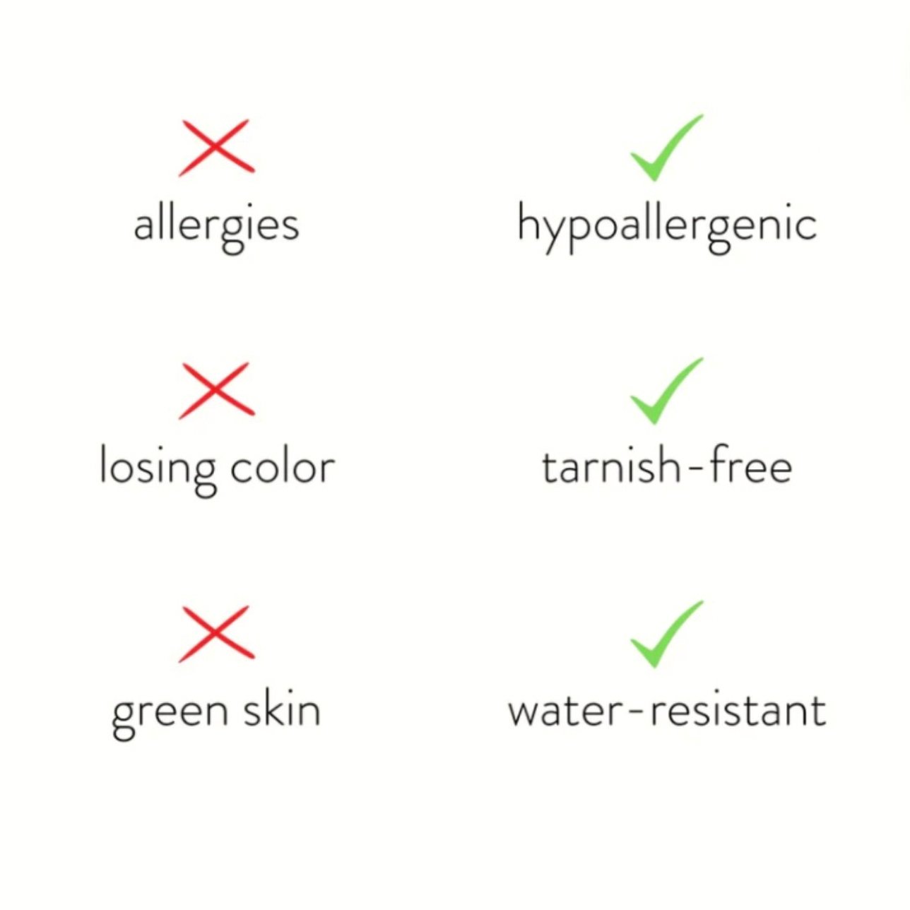 • Waterproof & tarnish-free